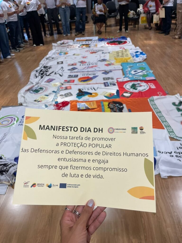 Ao final da programação, foi realizado o translado para o local do Ato Público do Dia Internacional dos Direitos Humanos (Dia DH), com atividades desenvolvidas na Rodoviária e na Galeria, fortalecendo a visibilidade pública das pautas de defesa dos direitos humanos e da proteção de defensoras e defensores.