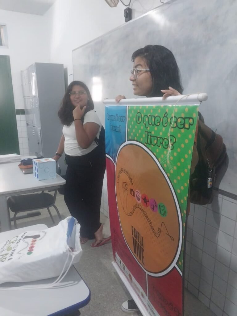 Maria de Fátima de Sá Gonçalves (25 anos), integrante do JAP, acompanhou as atividades nas escolas e destaca o envolvimento dos estudantes nesse processo: “Tenho percebido que eles estão bem ansiosos para entender o contexto do festival e também têm muitas dúvidas sobre como ele vai acontecer. Como são jovens do primeiro, segundo e terceiro ano, tudo isso é novidade para muitos deles”.